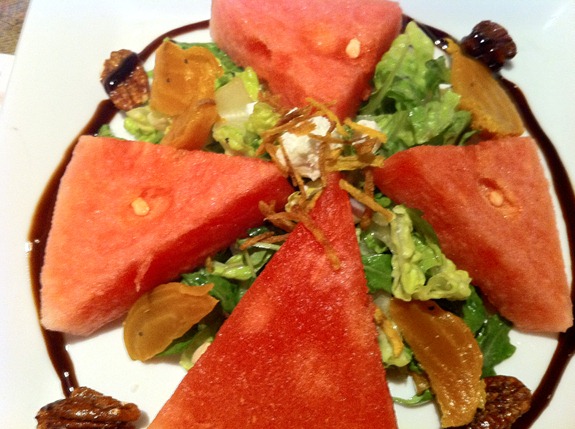 The Watermelon and Roasted Beet salad was refreshing. Romain hearts and baby arugula are lightly dressed in lemon chardonnay vinaigrette. The candied pecans were scrumptious and I ate them all first! This salad came with my Steak Frites.
